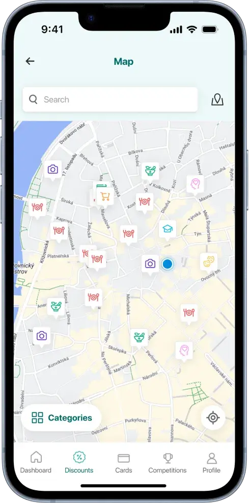 Gdziekolwiek jesteś, zobacz najbliższe zniżki na mapie.